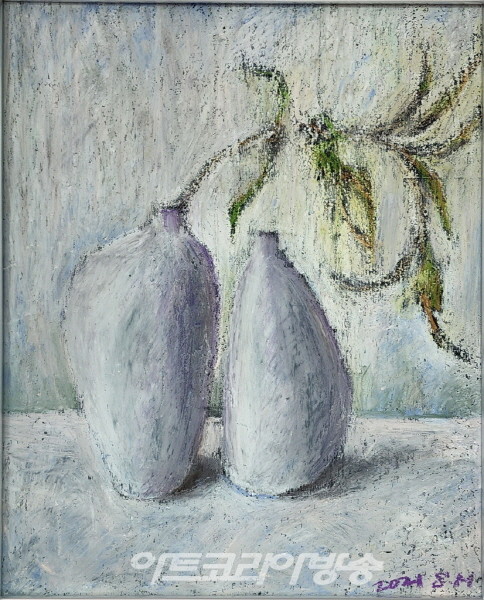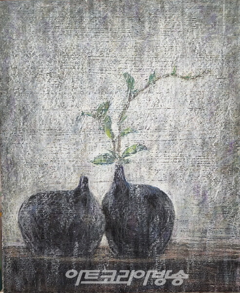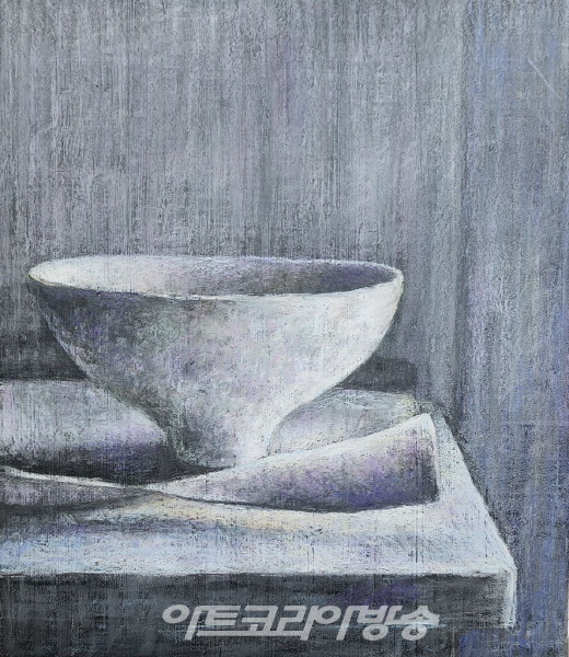 기물의 범위를 넘어 감정을 나누는 대상으로 캔버스에 다양한 그릇이 새겨질 때 마다 성찰의 시간이 되는 평온을 찾는다. 그릇을 중심으로 펼쳐진 배경의 스케치는 변화무쌍한 심정을 진지함과 따뜻함으로 교차하였고, 빛바랜 사진처럼 강조된 색채의 유희는 기억을 더듬듯 아름다운 추억으로 이끈다.