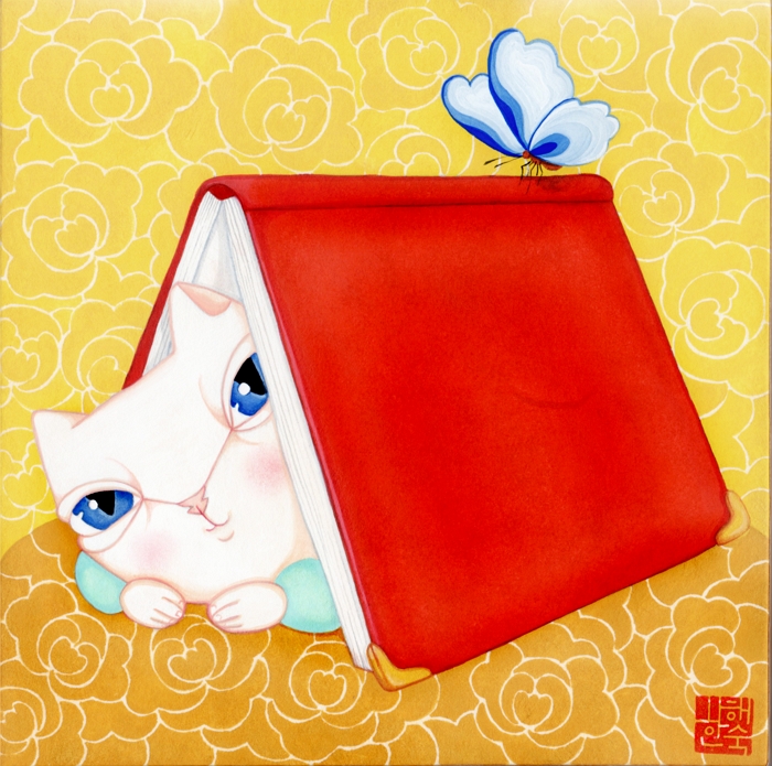 한해숙 단상고양이 책과 고양이2 150x150mm 이합장지에채색 2022