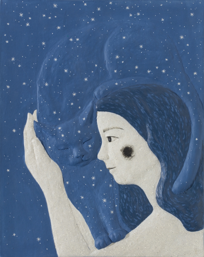 달빛 고양이 27.0x22.0cm mixed media on wood 2022