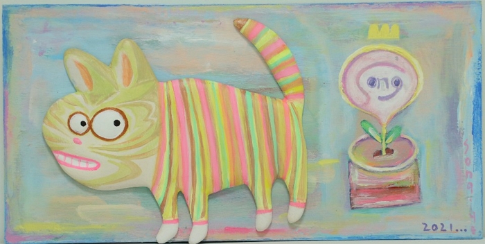 송영은 화가의 고양이는 감정 고양이 이다. 삶에 지칠수록 더 간절해지는 자신감과 당당함을 동심으로 무장해 재기 발랄한 감정 고양이를 통해서 표현한다. 누군가에게 위로와 함이 되기를 소망하고 그 바램을 평면과 입체의 부조 회화 방식으로 시각적 즐거움도 주는 작업을 한다.