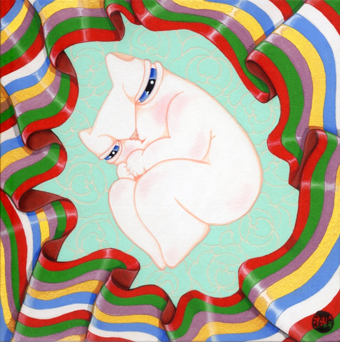 단상고양이_Fetus 5_색동_150x150mm_이합장지에채색_2022