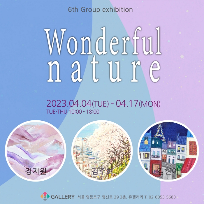 [아트코리아방송 = 박시유 기자] 화가는 어디에서 영감을 얻을까? 많은 예술가들에게 자연은 단순한 영감의 원천 그 이상이라고 생각이 된다. 수많은 예술가들이 자연의 아름다움을 자기만의 방식으로 표현하며 그것의 방식 또한 다양했다. 자연에 영감을 받은 작가 3인을 초대한 <Wonderful nature> 그룹전이 4월 4일부터 4월 17일까지 유갤러리에서 열린다.