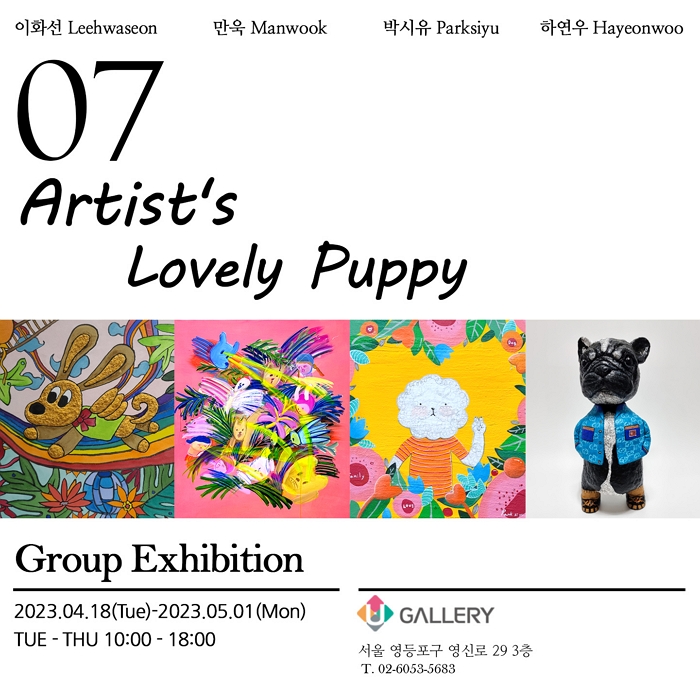 영등포에 위치한 유갤러리에서는 2023년 4월 18일부터 5월 1일까지 예술가의 반려견 그룹전으로 만욱, 박시유, 이화선, 하연우 작가의 'Artist's lovely puppy'가 전시되고 있다.