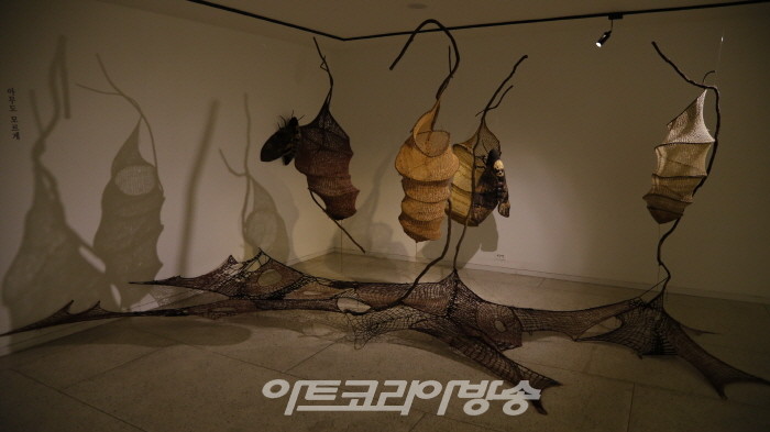 김영화는 사회·문화·역사의 의미를 생명과 연계하여 자신만의 해석 지점을 만들어 낸다. 이번 전시에서 보여주는 설치 작품은 삶과 죽음의 관계를 탈박각시나방의 변태 과정을 통해 한 편의 소설처럼 풀어내었다. 주제는 ‘어둠의 강을 건너온 생명’이다. 작가는 나방의 생장과 죽음을 통해 소멸할 수밖에 없는 존재의 속성을 드러낸다. 그러면서도 지금을 살아가는 ‘생명’ 그 자체의 아름다움을 강조한다.