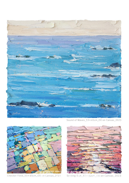 나이프를 사용해 만들어진 두꺼운 마티에르는 유화의 물성을 살리며 작품에 리듬감을 더한다.