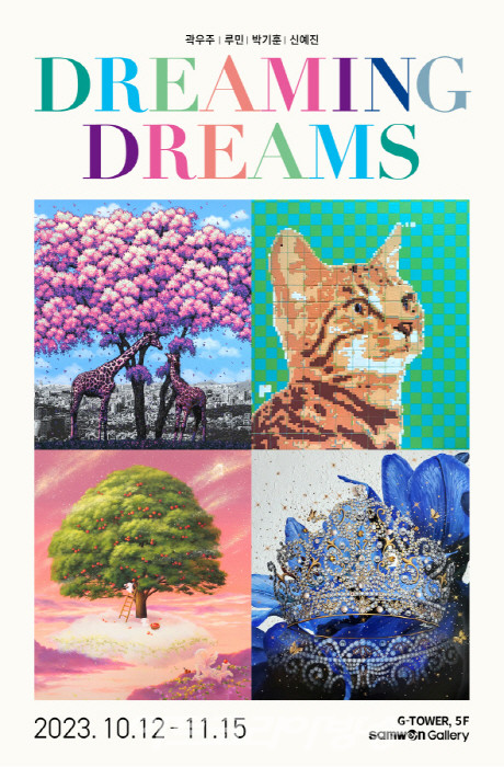 [아트코리아방송 = 김한정 기자] 삼원갤러리는 10월 12일부터 11월 15일까지 곽우주, 루민, 박기훈, 신예진 작가의 그룹전 《DREAMING DREAMS》 전시를 개최한다. 우리 모두의 가슴 속 소중하게 자리잡고 있는 꿈, 그 작은 소망 하나하나가 모여 만들어진 이번 전시는 4인 작가의 개성있는 화풍을 통해 그들이 바라보는 세상을 좀 더 따뜻하고 포근하게 담아낸다.