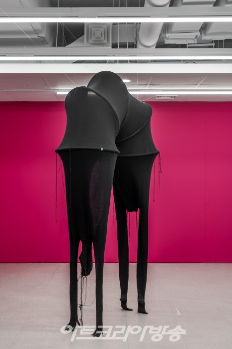 신예선 작가는 섬유의 구축성(Tectonic)을 기반으로 조형적 실험을 지속해오고 있다. 편직한 원단을 평범한 오브제와 결합하여 구조적인 조형작품을 만들거나 자연과 자신, 안과 밖 사이의 공간을 실선으로 구축한다. 자연에서 채집된 섬유 질료로 구축하고 해체하는 과정은 생성과 소멸, 삶과 죽음의 순환의 과정을 상징한다.