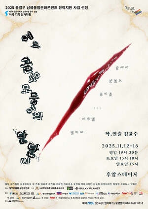[아트코리아방송 = 이용선 기자] 극단 창작집단강철무지개의 신작 연극 '어는 골목 모퉁이의 단단씨'가 제7회 말모이연극제 이북지역부문 참가작으로 선정되어, 오는 11월 12일(수)부터 16일(토)까지 서울 대학로 후암스테이지에서 공연된다. 어느 골목 모퉁이에서 발견된 단단씨의 이야기연극 '어는 골목 모퉁이의 단단씨'는 어느 골목 모퉁이에서 발견된 한 탈북 청년의 죽음을 둘러싸고, 그의 삶과 죽음을 추적하는 두 형사의 시선을 통해 꿈을 찾아 남한으로 온 한 인간의 현실과 우리가 외면한 사회의 단면을 묵직하게 그려낸다. 작품은 '사랑합