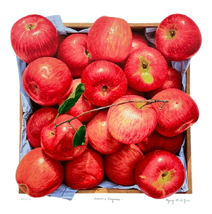 윤병락 작가의 '사과의 진실 그리고 눈속임'"김종근 미술평론가윤병락을 기억하는 사람은 그를 일컬어 사과 화가라 부른다. 왜냐하면, 최근 그의 작품에 주요한 모티브가 사과이기 때문이다.그러나 그의 사과는 폴 세잔이 추구했던 사과와는 다르다. 세잔이 입체적 표현을 위한 대상으로서 사과를 화면에 끌어들였다면, 윤병락은 자연적인 욕망의 표현에서 출발하고 있기 때문이다.그가 과일을 주제로 하는 배경에는 고향 영천에서 자란 기억과 농사를 지으면서 얻었던 소중한 기억에서 시작된다."농작물을 생산하는 부모님의 소중한 땀방울을 나만의 이미지로 옮겨