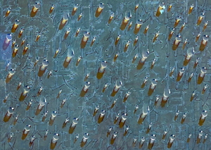 '시간이 권기자에게 선물한 최고의 훈장, 물감덩어리' 김종근 (미술평론가) 파격적으로 시간과 시대를 앞서간 창시자 백남준은 첨단의 기술과 인간이 어떻게 공존할 것인가? 물었다. 그는 인간 삶의 근원인 시간에 대한 성찰을 ‘시간도 끝나가고 테이프도 끝나간다’로 종결지으면서 그 고민을 예술로 풀어냈다. 시간에 대한 성찰을 치열하게 다루고 있는 권기자도 이러한 카테고리 그룹에 대표적인 작가이다.이란 주제 안에서 펼쳐지는 수행 같은 반복적인 붓질, 그 물감들의 흔적과 집적, 그리고 그들이 시각적 오브제로 만들어진 색 덩어리