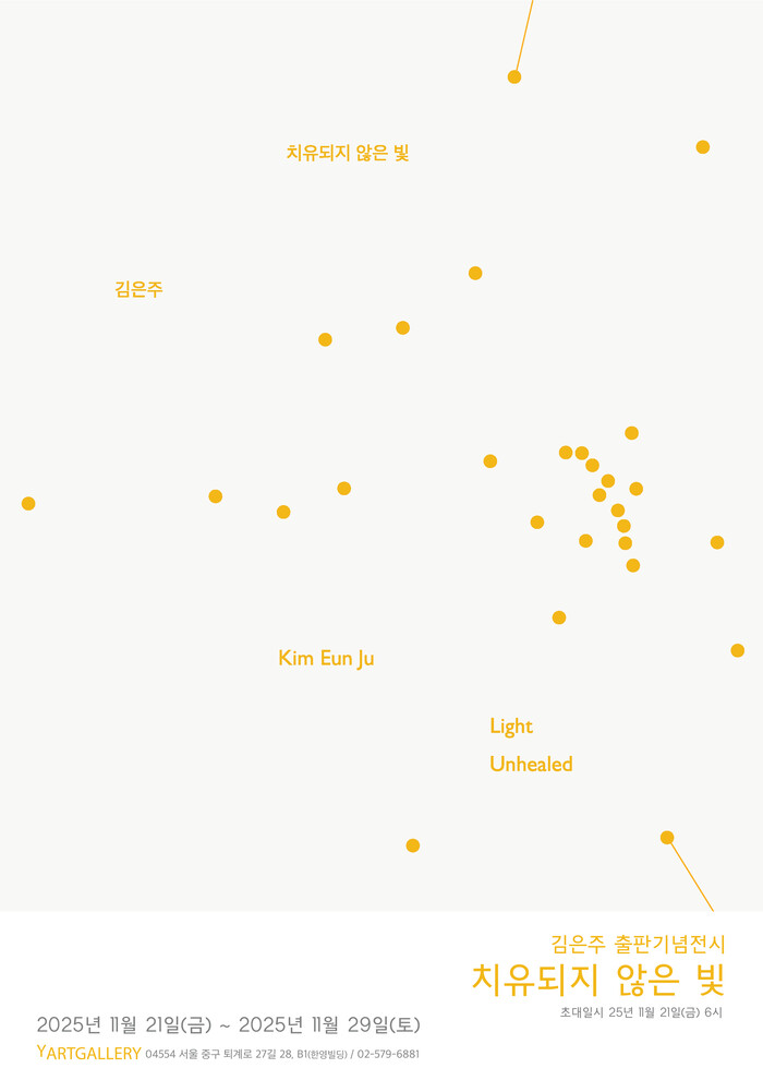 전시는 ‘치유되지 않은 빛’이라는 제목처럼, 빛이 드러내는 상처와 어둠 사이의 경계를 탐색한다. 김은주의 사진은 강렬한 현장성과, 남겨진 자리와 시간의 결, 그리고 생존자들의 목소리가 빠져나간 공간을 조용하게 응시한다. 그가 기록한 ‘빛의 자국’은 어떤 치유도 완결되지 않았음을 말하지만, 동시에 치유를 향해 나아가는 매우 작은 가능성의 흔적이기도 하다.