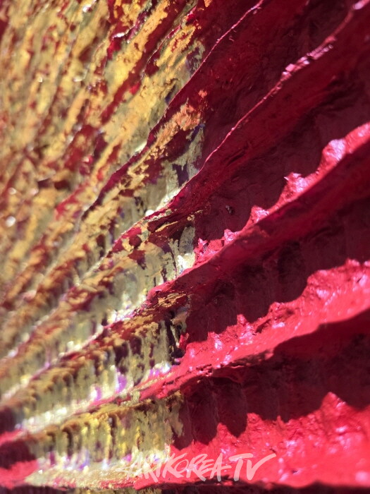 무수히 쌓아놓은 면들이 층층이 쌓인 단면과 교차하면서 삶과 고통에 대한 성찰을 담아내고 있다.