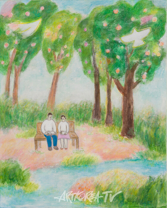 작가의 작품을 보면 행복하고 따뜻한데 작품을 보는 누구에게나 편안하고 고요함을 전달한다. 특히 작가의 신앙의 힘과 생명력이 가득한 작품은 소박하고 고요한, 과장되지 않은 편안함과 작가의 종교적 믿음으로 소망하는 세계를 은유적으로 표현하고 있다.