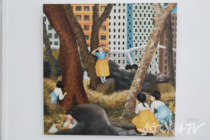 홍단비 작가는 어린아이의 형상으로 바라본 현대인의 삶과 가정, 그리고 꿈을 담은 회화와 설치 작품을 선보인다. 작품은 주로 아이를 소재로 하고 있지만 그 아이들을 통해 인생을 말하고 싶은 작가는 ‘소통’이라는 부분에 집중하고, 이번 전시에서 그 방향성이 드러나는 것을 알 수 있다.