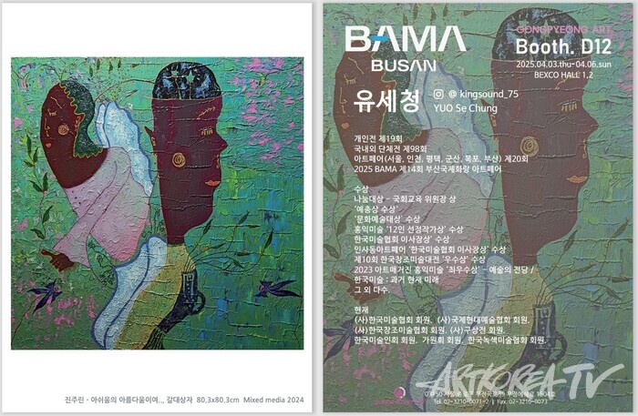 [아트코리아방송 = 송정훈 기자] 4월 3일부터 6일까지 부산 벡스코 1, 2홀 D12 부스에서 펼쳐지는 2025 부산국제화랑아트페어 (BAMA)에서 유세청 작가의 독창적인 작품 세계를 만나볼 수 있다.
