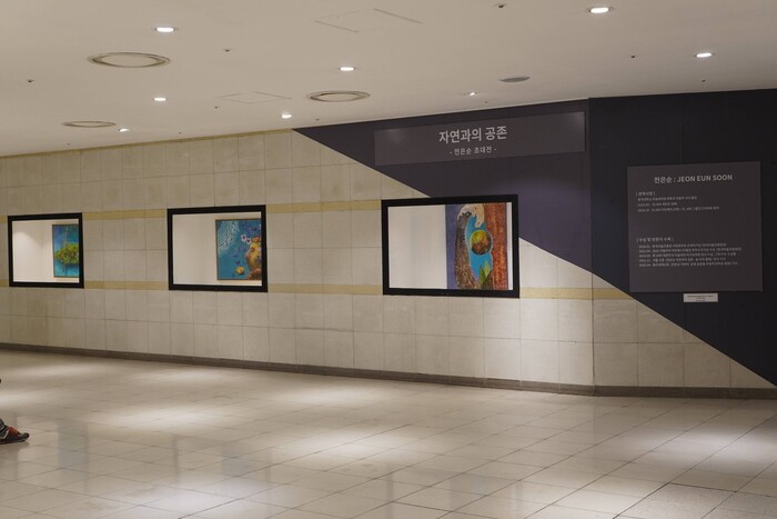 강렬한 색채와 힘찬 독수리등을 그리는 전은순작가의 초대개인전이 4월 한달간 일산 롯데백화점 Charlotte Art Studio 에서 열렸다. 작가는 대자연을 그려내는 힘있는 화풍을 통해 사람들의 마음을 움직이는 그림들을 구현한다. 이번 전시에서는 소품 20여점과 20호내외의 신작여러점 100호 크기의 대형신작까지 다채로운 작품들을 선보였다. 그동안 일반 전시들에서 볼 수 없었던 대작들도 선보여서 지나가는 지하철역 승객들과 갤러리 방문객등에게 많은 주목을 받았다. 실제로 촬영과 인터뷰를 하는 중에도 질문을 받는등 관심이 쏠렸던 전시였다. 특히 이번 전시는 갤러리위르의 특별기획으로 마련되어진 만큼 더 많은 기대 속에 이뤄졌다.