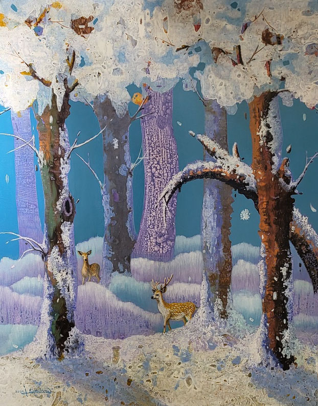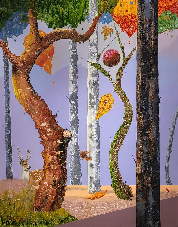 "그래서 전은순의 숲은 낮에 자고 밤에 깨어난다. 이렇듯 전은순의 숲은 손상되지 않은 아름다운 자연이요, 적막하고 평화롭지만 반면에 시간과 계절을 쉽게 파악할 수 없는 신비롭고 모호한 장소이다. 까닭에 그의 회화는 ‘경이’의 아름다움을 추구하는 또 다른 버전이라 여겨진다." -유근오 미술평론글에서 발췌