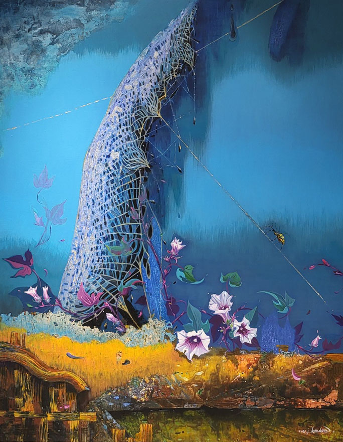[아트코리아방송 강민수 기자] " 전은순은 그녀의 작품들을 공존(Coexistence)이라 일컫는데, 이는 작가가 세상을 보고, 숨쉬고, 소화하며, 그림을 통해 표현하는 것에 따라 그림을 그리는 방식 또한 의식 속에 함께 존재한다는 것을 의미한다. 작가의 정원에서 따온 형태와 색채, 식물 위에 내리는 햇빛은 삶과 예술에 대한 관점의 원천이다. 이들은 작가의 가장 깊은 존재감을 통해 감지되는, 작가를 둘러싼 환경에 필수불가결한 요소이다. 작품 산새 알 (Mountain Bird)에서는 둥지의 알들이 새 대신, 새를 닮은 모양의 알들이 제방 안에 놓여있다. 물 속에는 거미 한 마리가 의문스러운, 서글픈 느낌의 상관물로 존재한다." 로버트 C. 모건 박사 - 평론글에서 발췌